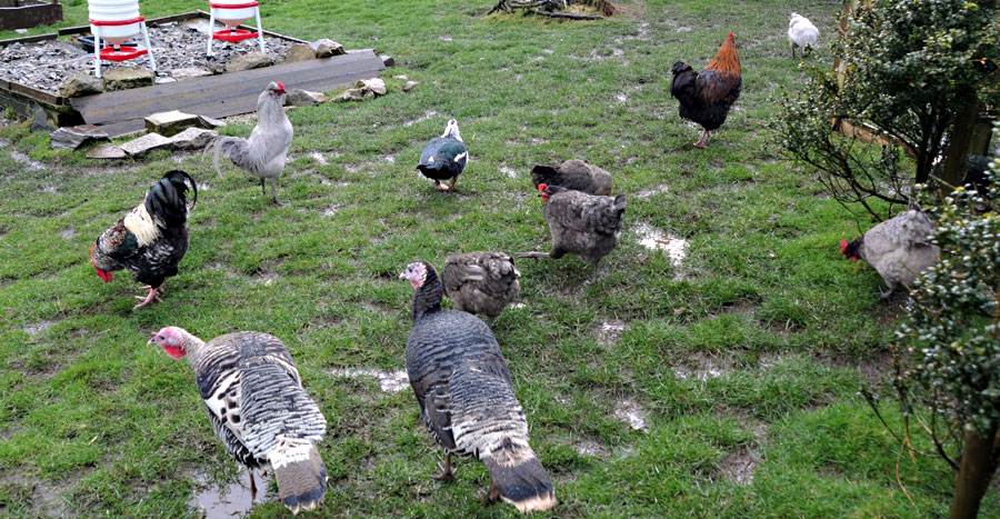 A slightly less traumatic day today than yesterday, although both problems (daytime fox raids and our aggressive male turkey) still very much exist! Jupiter and Neptune were put out with the poultry today and told NOT to race around and make muddy holes in the grass (they ignored us) and the fox came back mid-afternoon to see if he could finish off the cockerel he tried to take yesterday. As luck would have it, our neighbour was passing by again and saw him prowling and so thanks to him and the presence of the alpacas, the fox left our paddock empty handed (or should that be empty-mouthed!!)!! Nonetheless, a reinforcement (not that we need it) of the fact that he or she is very persistent (as others have been before) and without the alpacas we could not possibly have ANY of our poultry outside now.