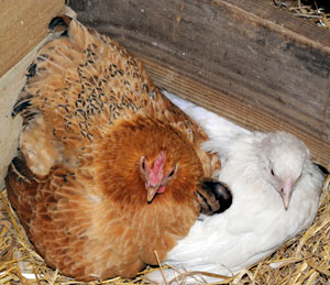 Chickens are sociable creatures as these two examples show - in addition they are very adaptable. Whilst it is 'normal' for one chicken to bring up one brood, our birds have 'adapted' to the situation/environment they have found themselves in and shown themselves to be happy to share. Will this affect the characters of the chicks themselves? Who knows??