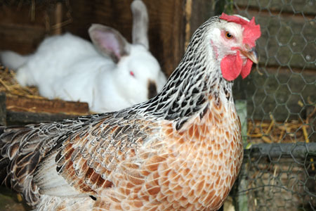 The chicken in the first photo is our Leghorn/Sussex cross (see 24th July): she is NOT moulting as she was only born in the spring and so has in fact spent the summer getting her first set of true feathers. She is rather a splendid looking bird and has begun to lay in the last week or so which is great. Not so great is the fact she has chosen the rabbit hutches to do so in, but then she is following in the footsteps of so many chickens before her... we are quite used to cleaning out the hutches each day and finding a chicken or two inside. Her very first egg was quite small, her egg yesterday quite large and thin shelled - all entirely normal when a chicken first begins to lay.